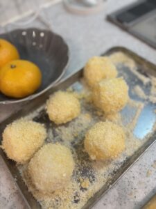 さらに、残った材料を使い、小さなおにぎりに、チーズを入れてライスコロッケも出来上がり。